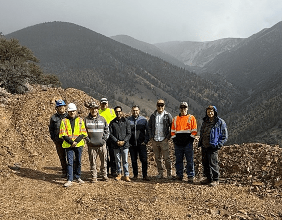 Figure 4: Site Visit, September 2025. From left to right: Rod Christensen (Safety Manager), Murray Nye (President), Tim Hunter (Mining Contractor), David Sabourin (VP Mining Engineering), Ali Haji (CEO), Liam Farrell (VP Operations), Austin Zinsser (VP Exploration), Brooks Hintz (Contract Geologist), Pete Strazdas (Environmental Consultant).